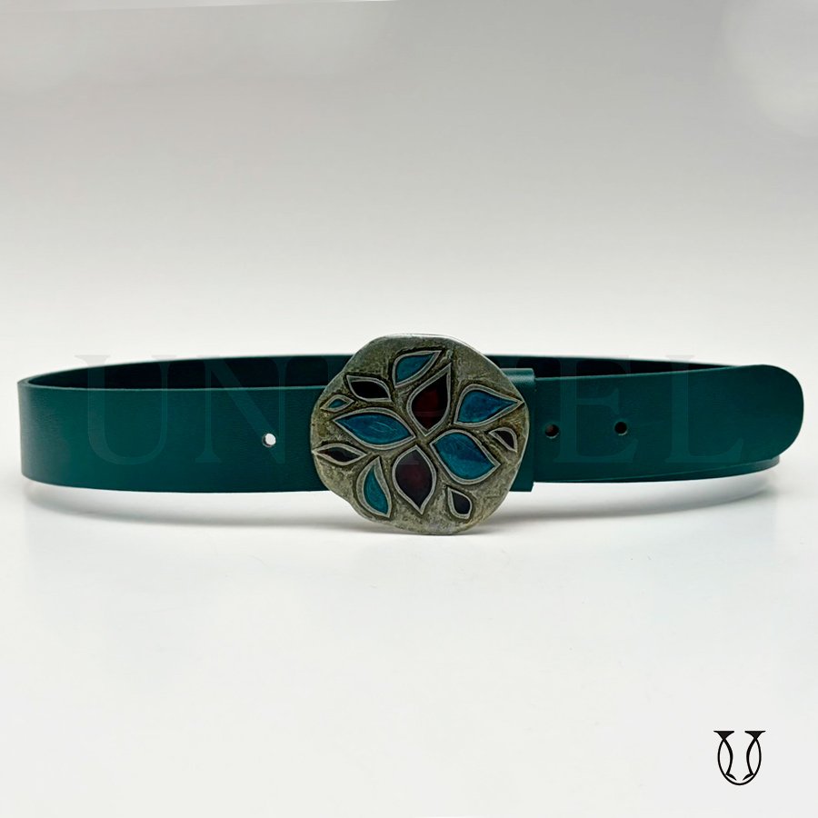 COD0343 Correa cuero vacuno hebilla grande 4.0 color verde