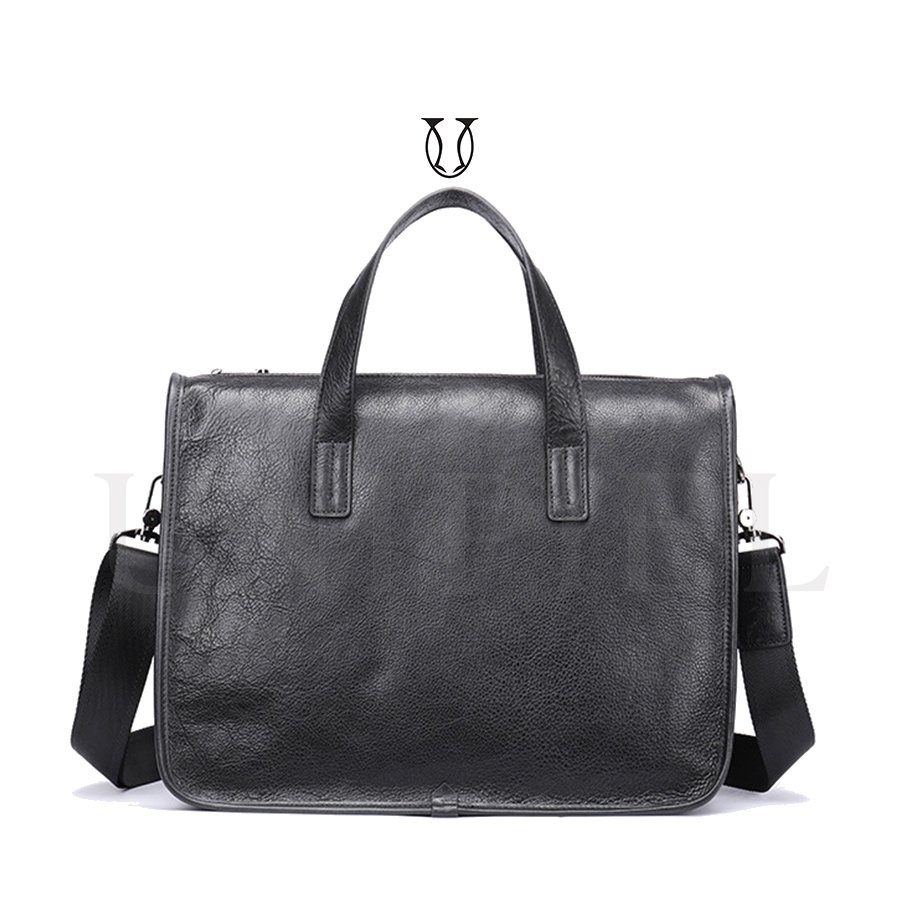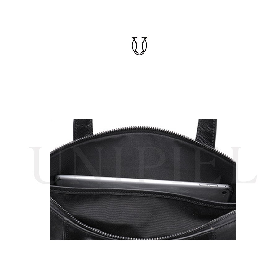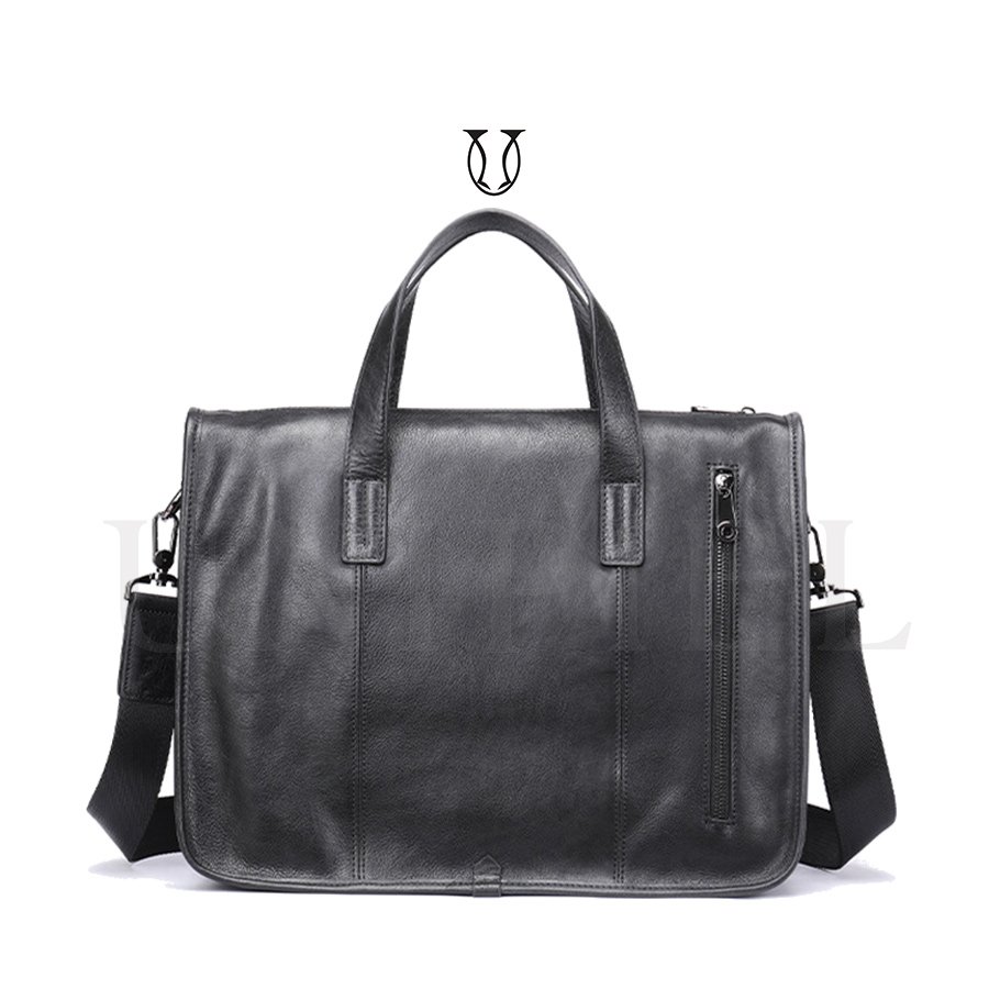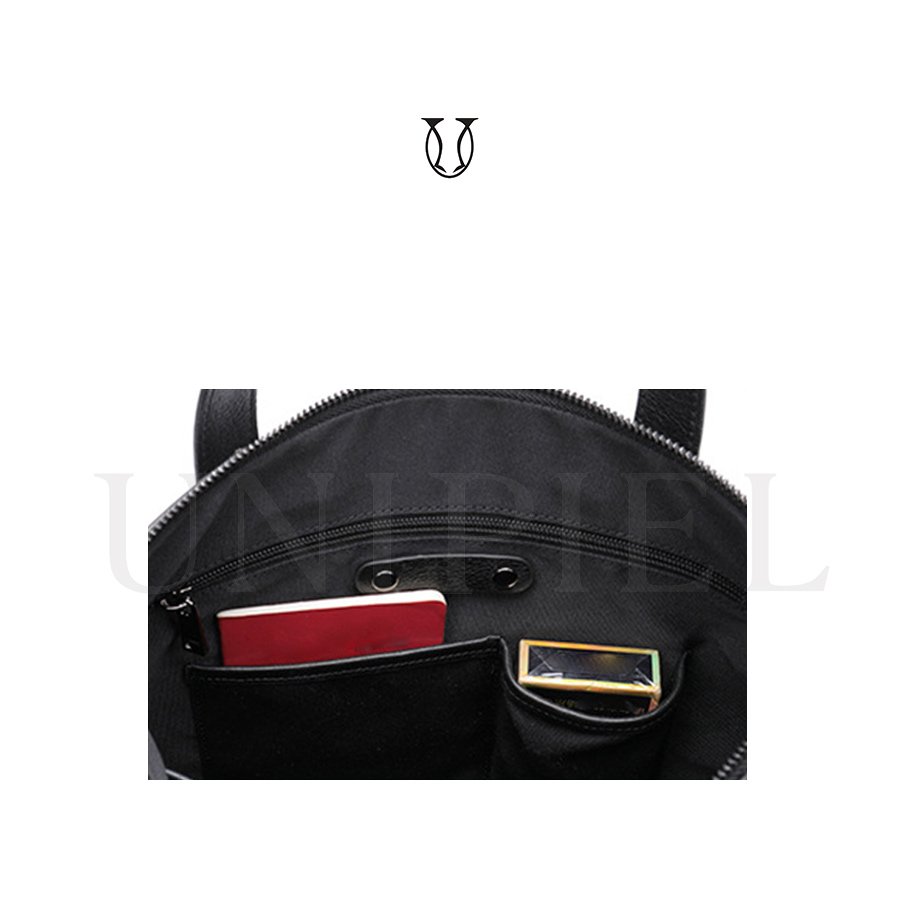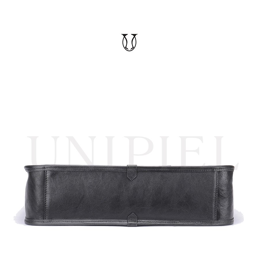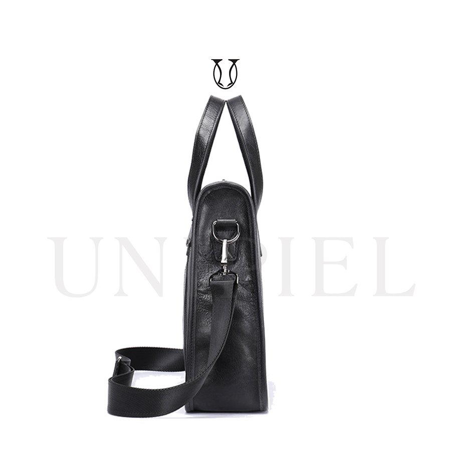 Maletín confeccionado en cuero de res. Cuenta con un compartimiento amplio con sierre y bolsillos externos.