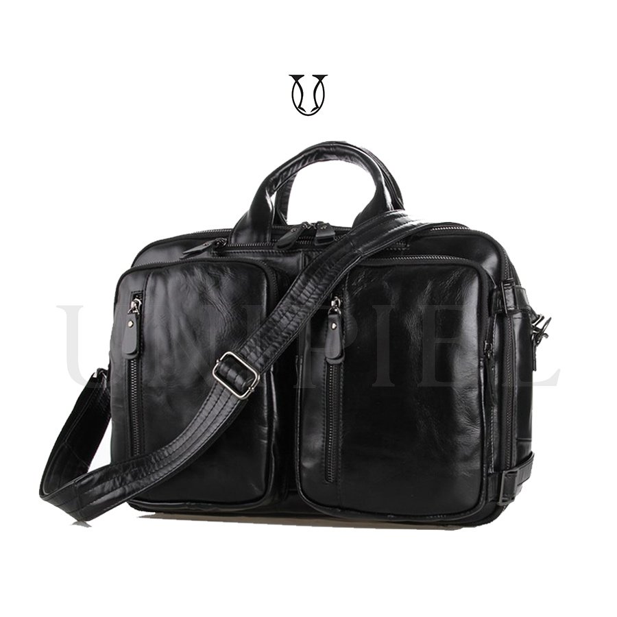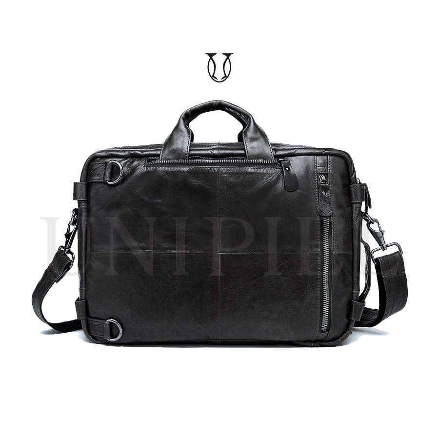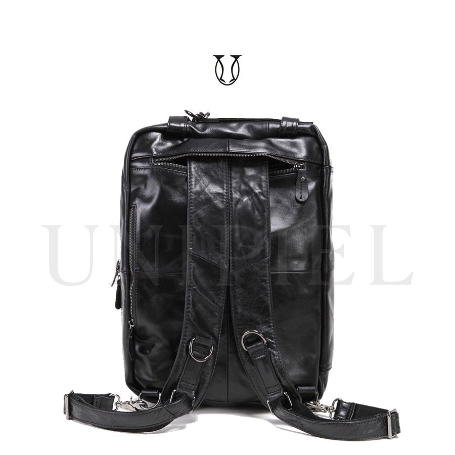 Maletín mochila confeccionado en cuero de res. Cuenta con un compartimiento amplio con sierre y bolsillos externos.